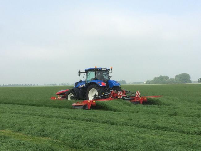 Een knorrende 6 cilinder Vario die in combinatie met een Kongskilde tripplemaaier van 9 meter breed het hoge gras te lijf gaat. Kortom : it’s DEMO time!! Geen groenstrook is veilig, wij knippen en scheren op uw verzoek.